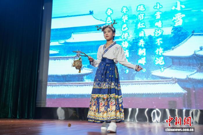 9月29日,广西邦际壮医病院2025年“原草童止·四季健康”西医药文明入校园举动之骨气取西医药文明走秀正在北宁市5象新区第4实行小教演出。图为坐春骨气中心映现。中新社记者 旧冠行 摄